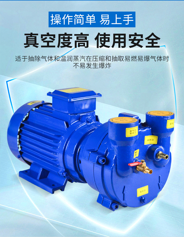 2BV系列水環(huán)真空泵及壓縮機被廣泛用于石油、化工、制藥、食品、制糖工業(yè)等領域。由于在工作過程中,氣體的壓縮過程是等溫的,所以在壓縮和抽吸易燃易爆氣體時,不易發(fā)生爆炸,所以其應用更加廣泛。